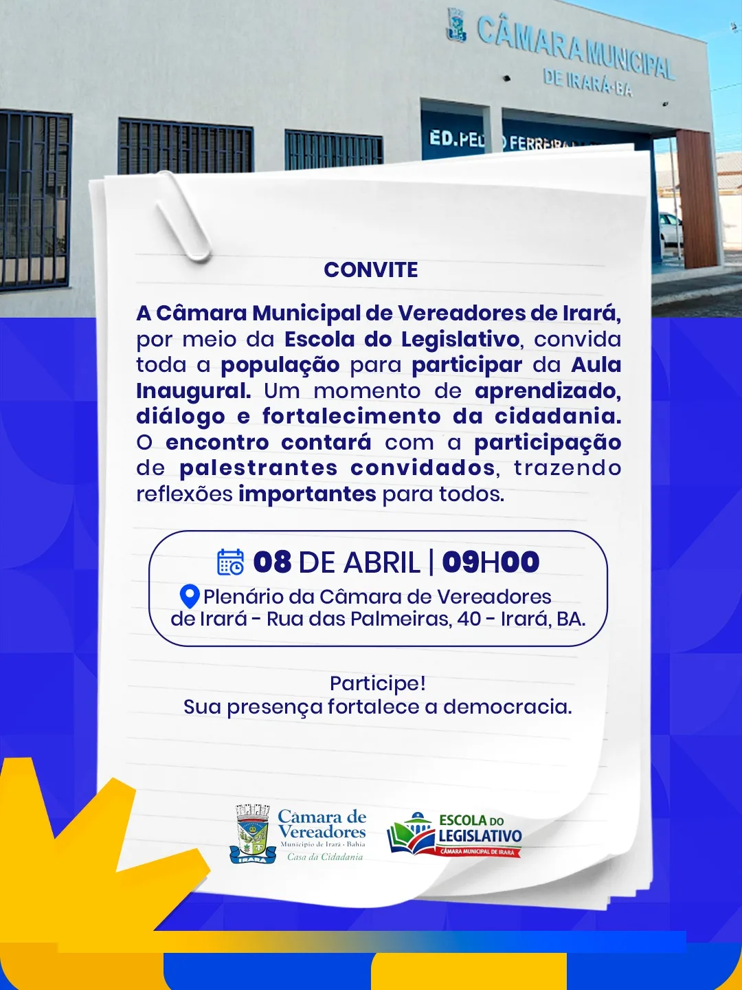 AULA INAUGURAL DA ESCOLA DO LEGISLATIVO DE IRARÁ 08 04 2026